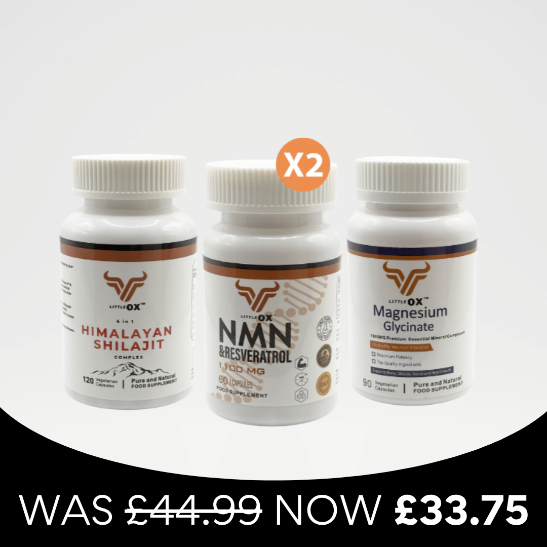 Energise, balance, and sustain your body’s performance with this targeted combination. NMN boosts cellular NAD+ for youthful vitality, Magnesium keeps your muscles, nerves, and energy production running smoothly, and Himalayan Shilajit supports nutrient absorption while supporting stamina. Together, they create a steady, lasting energy flow — no crashes, just pure vitality.